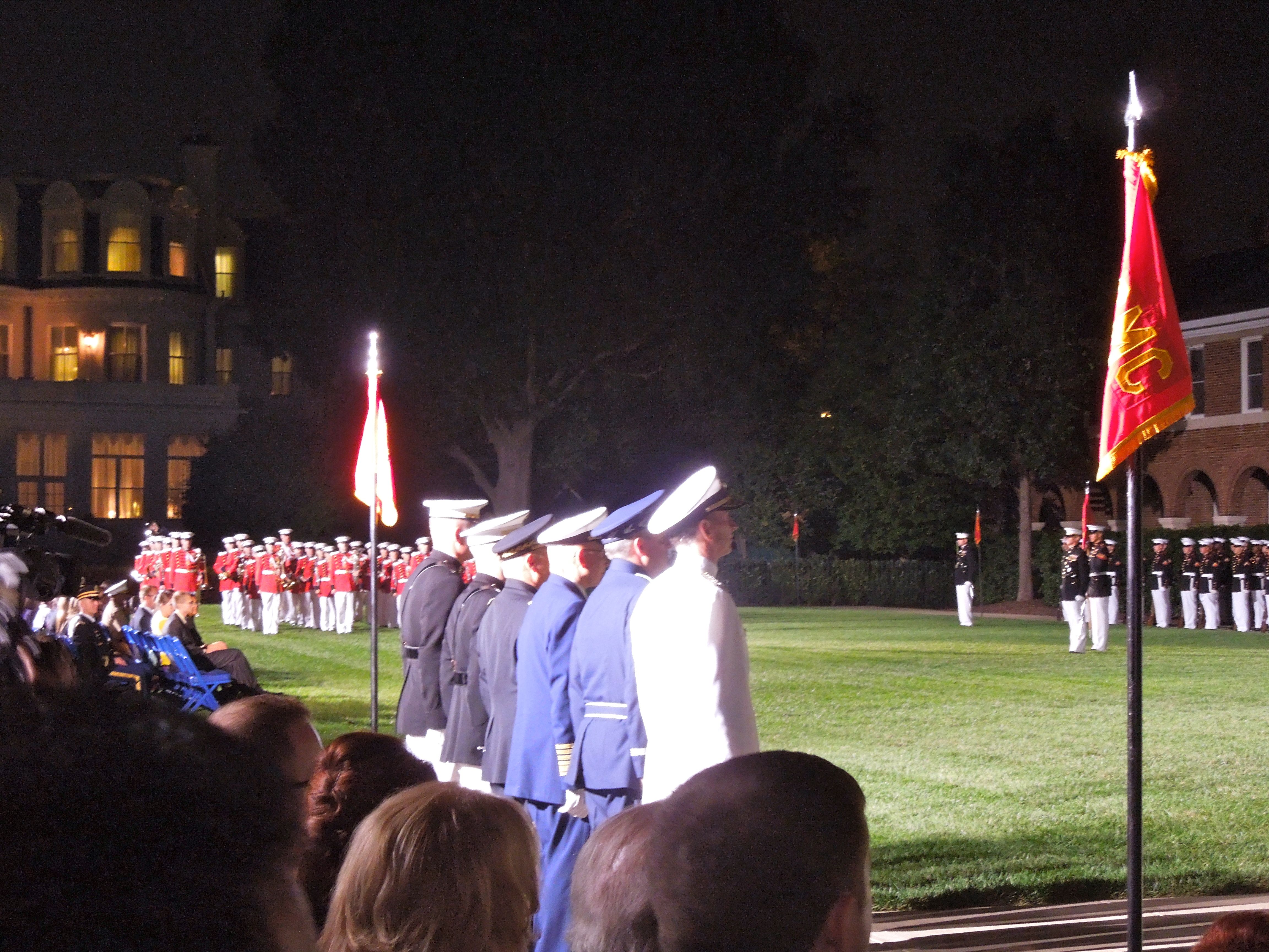 The Chiefs of Staff of the armed forces and the Commandant of the Marines review the troops