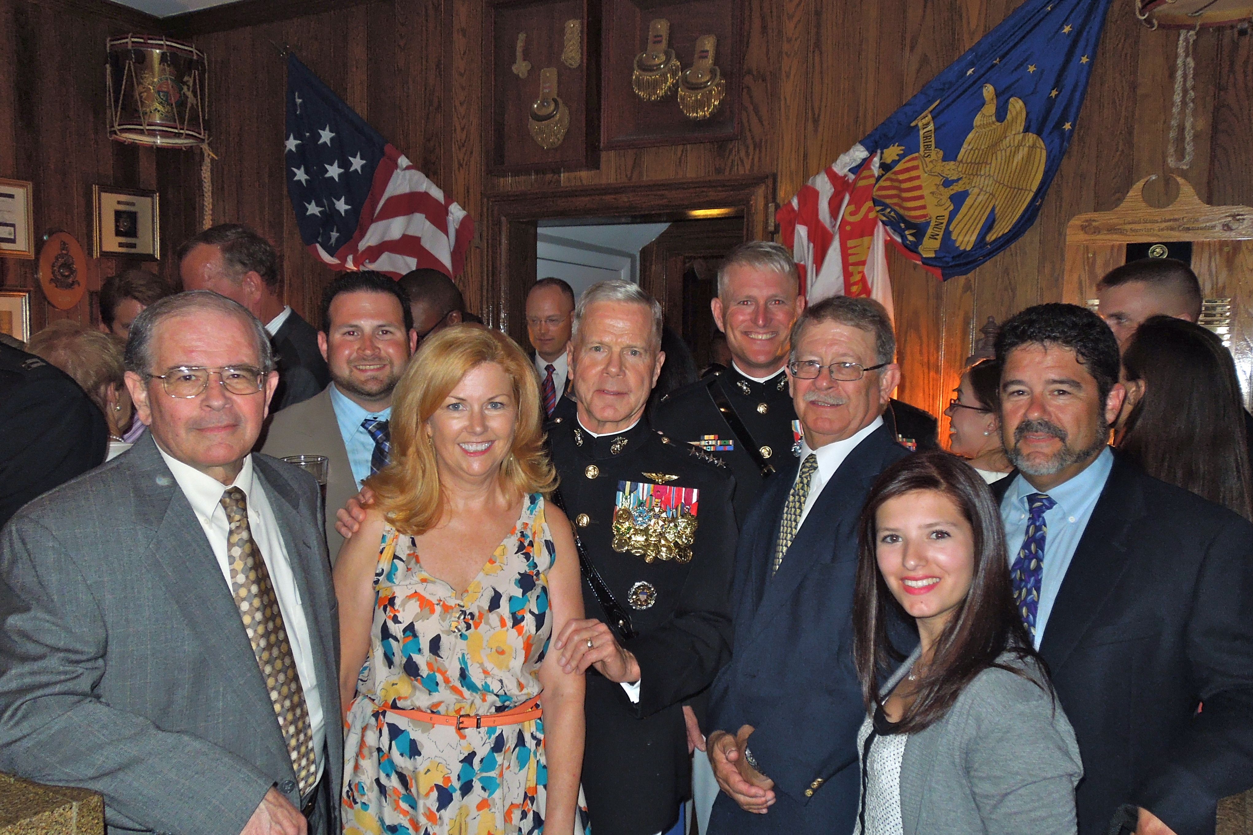 The Commandant, Gen. James Amos (center) and Col. Christian Cabaniss, Marine Barracks’ Commanding Officer, with family members