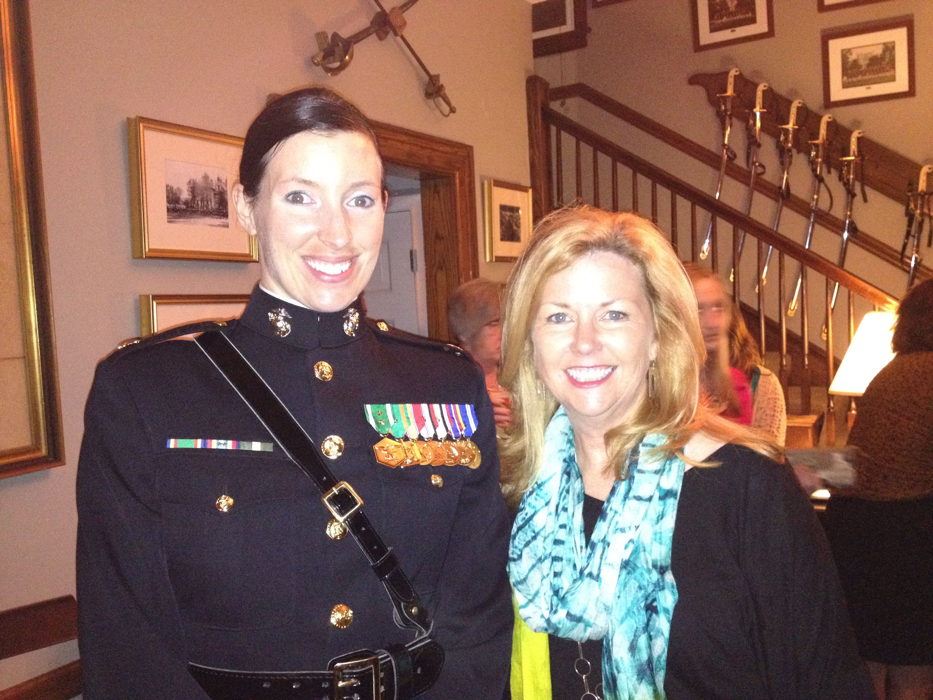I had the honor and pleasure of meeting the Marine they were writing about. And she’s not just any Marine. Major Sarah Armstrong is the first female parade commander of a Friday Evening Parade, a tradition that started back in my Dad’s time as Executive Officer of Marine Barracks.