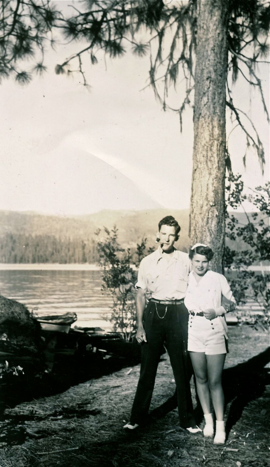 Short (5’6″) and energetic, he had a shock of thick brown hair and dressed immaculately, never appearing on the streets of Boise without a fresh flower in the lapel buttonhole of his fresh white Palm Beach suit in the summertime (and rarely without an Antony Y Cleopatra cigar parked in his mouth). The buttonhole flower came from his mother Hannah’s yard “starting with the snowdrops, first flowers through the snow, and as spring and summer progressed, violets, lily-of-the-valley, pansies, pinks, through the fall-flowering marigolds,” Mom wrote in a letter to historian Gwynn Barrett to assist in his research for a book on Uncle Lynn. Dean had a strong sense of duty to his parents and stopped to visit his mother on the way to the office every morning, eating buckwheat pancakes whenever they were offered.