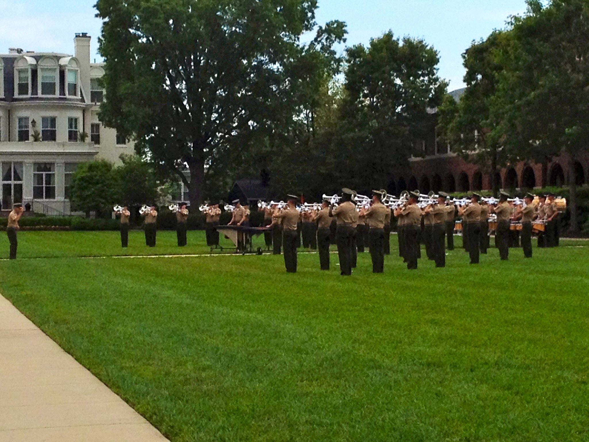 The Marine Corps band was practicing outside at the very moment I arrived.